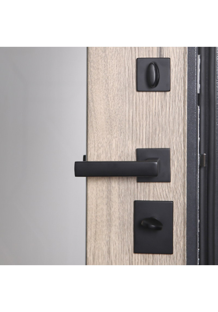 - Фурнитура: Ручка, ночная задвижка, глазок на квадратной розетке (цвет «черный»).