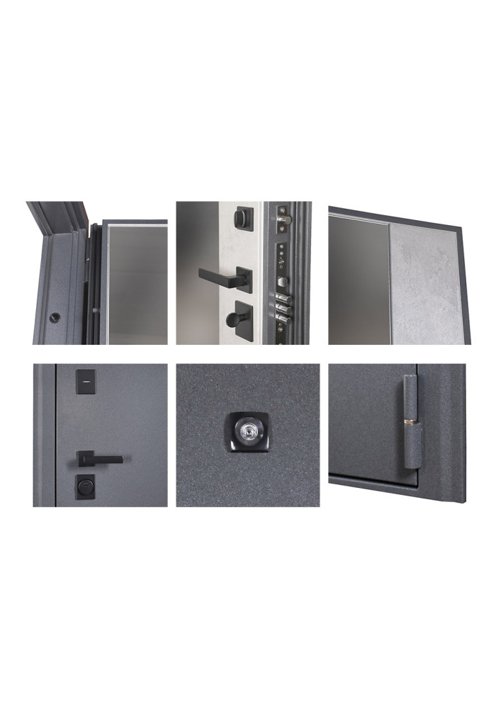 - Наружный лист металла: Лист металла 1,5 мм. Порошковое покрытие "букле графит". Наличник фигурный